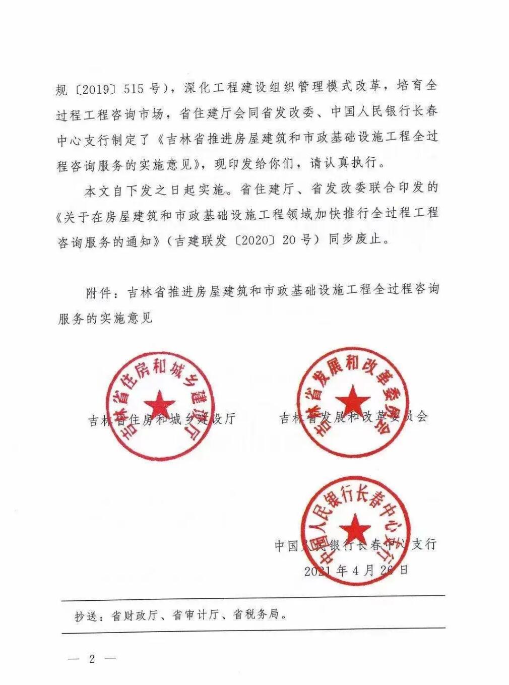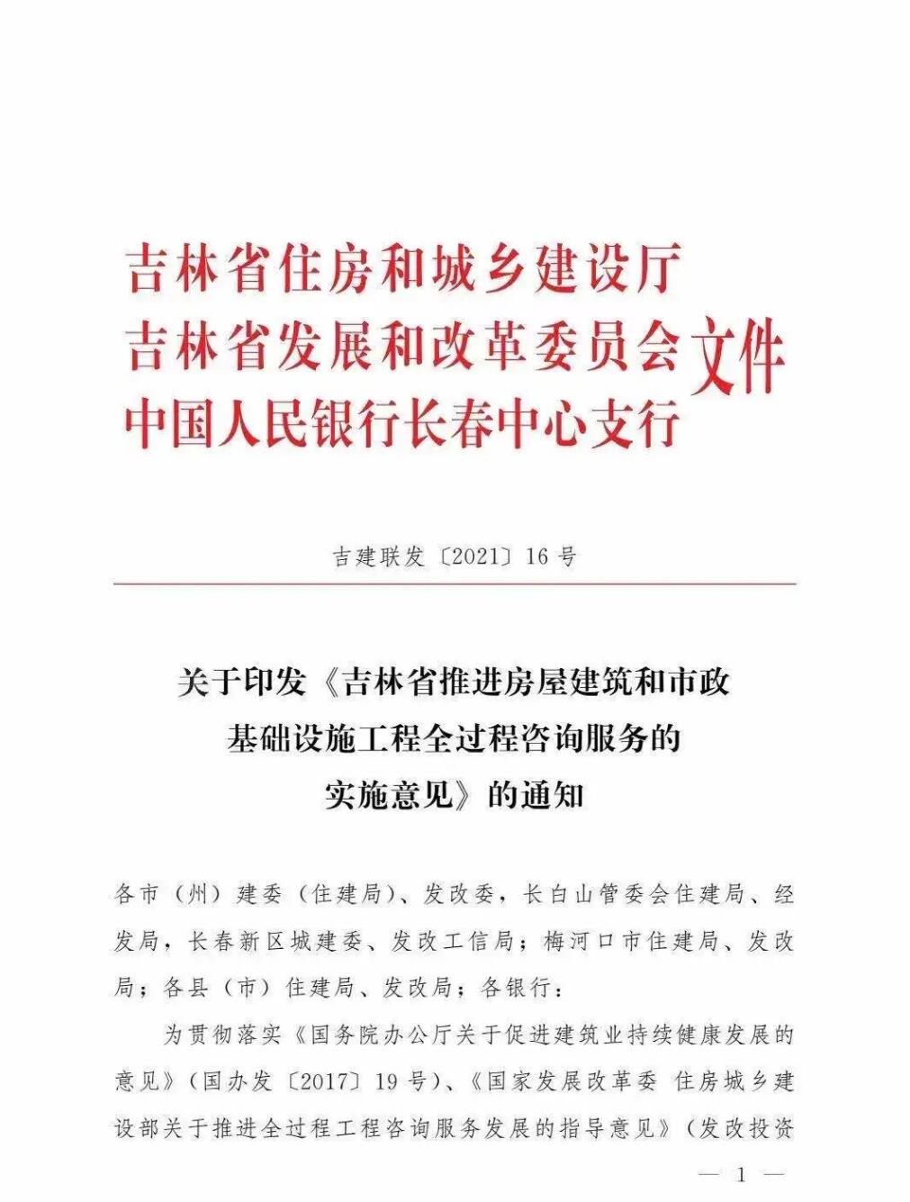 【2021-5-8】关于印发《吉林省推进房屋建筑和市政基础设施工程全过程咨询服务的实施意见》的通知